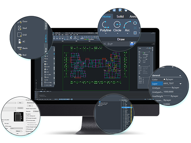 เครื่องมือช่วยออกแบบ มีฟีเจอร์เฉพาะของ ZWCAD เพื่อเพิ่มความคล่องตัวและประหยัดเวลาในการทำงาน