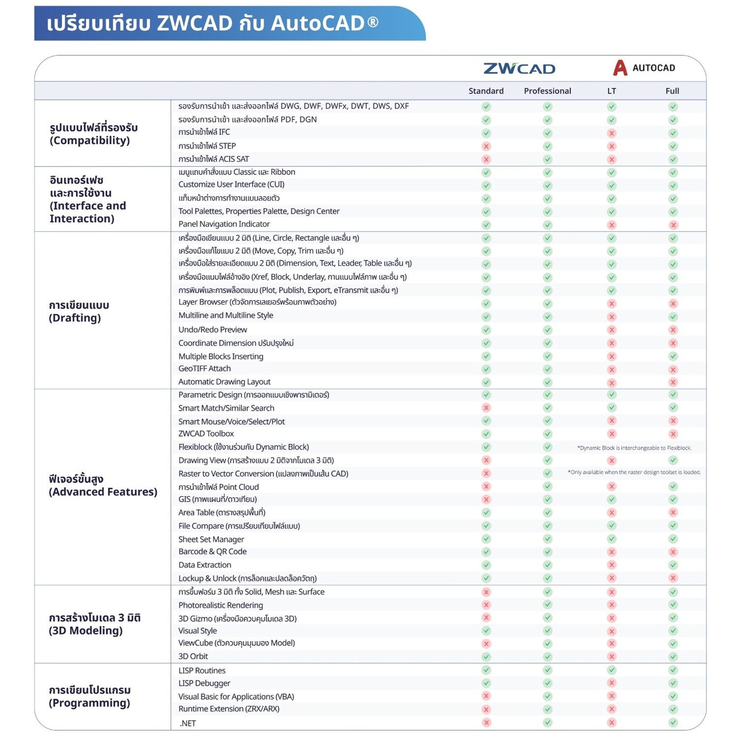 | ซอฟต์แวร์เขียนเเบบ CAD 2D/3D ออกแบบมาเพื่อทดแทนซอฟต์แวร์ CAD เดิมที่เคยใช้อยู่ได้อย่างสมบูรณ์แบบ ด้วยอินเตอร์เฟซที่คุ้นเคย ไม่ต้องเรียนรู้ใหม่ และโมเดลการเป็นเจ้าของแบบ "ซื้อขาด" ที่ช่วยประหยัดงบประมาณองค์กรได้อย่างมหาศาล |